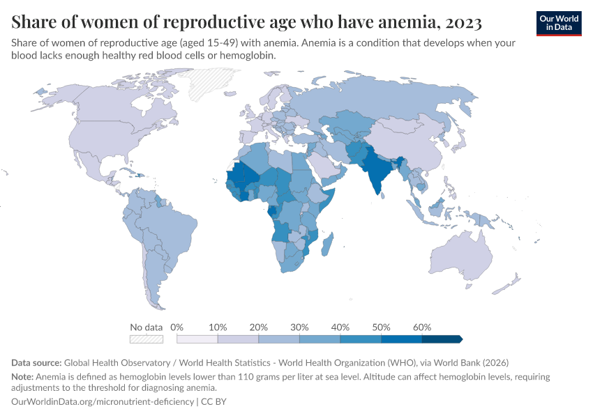 Hannah Ritchie (2024) - “Billions of people suffer from anemia, but there are cheap ways to reduce this” Published online at OurWorldinData.org. Retrieved from: 'https://style-housekeeper-simplifyre.owid.pages.dev:8789/20260202-181317/billions-people-suffer-anemia-cheap-ways-reduce.html' [Online Resource] (archived on February 2, 2026).BibTeX citation