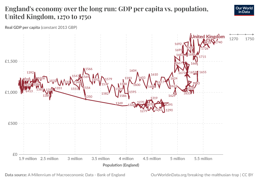 Max Roser (2020) - “Breaking out of the Malthusian trap: How pandemics allow us to understand why our ancestors were stuck in poverty” Published online at OurWorldinData.org. Retrieved from: 'https://style-housekeeper-simplifyre.owid.pages.dev:8789/20251125-173858/breaking-the-malthusian-trap.html' [Online Resource] (archived on November 25, 2025).BibTeX citation
