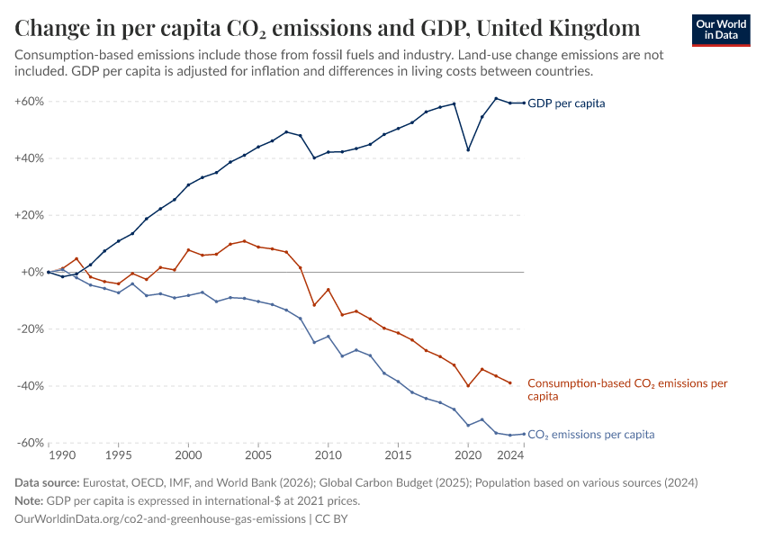 Hannah Ritchie (2021) - “Many countries have decoupled economic growth from CO₂ emissions, even if we take offshored production into account” Published online at OurWorldinData.org. Retrieved from: 'https://style-housekeeper-simplifyre.owid.pages.dev:8789/20260209-101631/co2-gdp-decoupling.html' [Online Resource] (archived on February 9, 2026).BibTeX citation