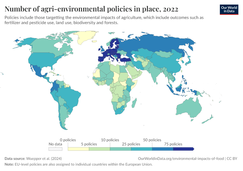 Hannah Ritchie (2024) - “How effective are policies in reducing the environmental impacts of agriculture?” Published online at OurWorldinData.org. Retrieved from: 'https://style-housekeeper-simplifyre.owid.pages.dev:8789/20260202-181317/effective-policies-reducing-environmental-impacts-agriculture.html' [Online Resource] (archived on February 2, 2026).BibTeX citation