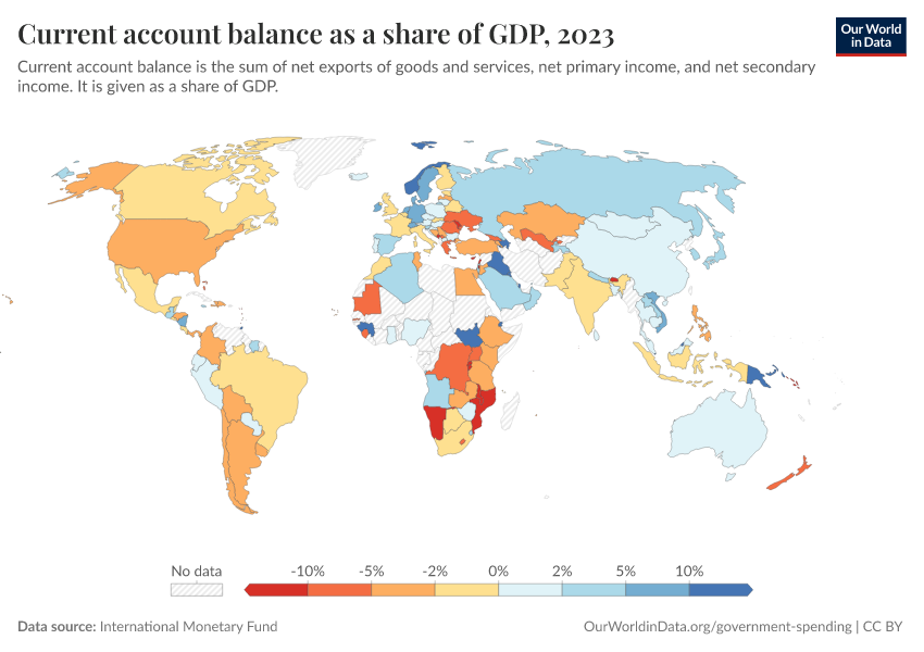 “Data Page: Current account balance as a share of GDP”. Our World in Data (2026). Data adapted from International Monetary Fund. Retrieved from https://style-housekeeper-simplifyre.owid.pages.dev:8789/20251120-211749/grapher/current-account-balance-as-a-proportion-of-gdp.html [online resource] (archived on November 20, 2025).How to cite this data
