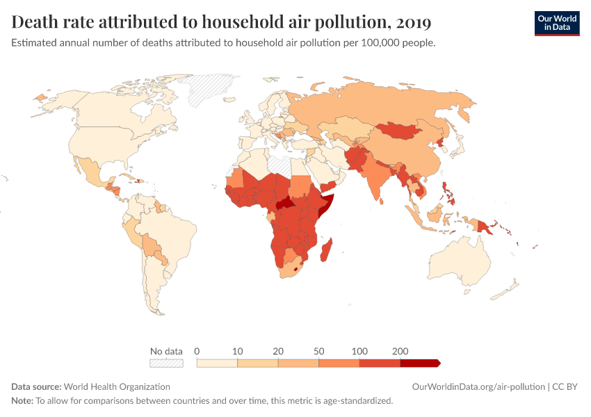 World Health Organization – processed by Our World in Data. “Death rate attributed to household air pollution” [dataset]. World Health Organization, “Global Health Observatory (GHO), World Health Organisation (WHO)” [original data]. Retrieved February 25, 2026 from https://style-housekeeper-simplifyre.owid.pages.dev:8789/20260130-180113/grapher/death-rate-household-air-pollution.html (archived on January 30, 2026).