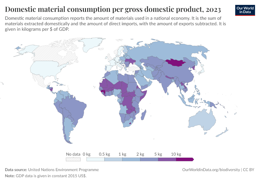 “Data Page: Domestic material consumption per gross domestic product”. Our World in Data (2026). Data adapted from United Nations Environment Programme. Retrieved from https://style-housekeeper-simplifyre.owid.pages.dev:8789/20260130-180113/grapher/domestic-material-consumption-per-unit-of-gdp.html [online resource] (archived on January 30, 2026).How to cite this data