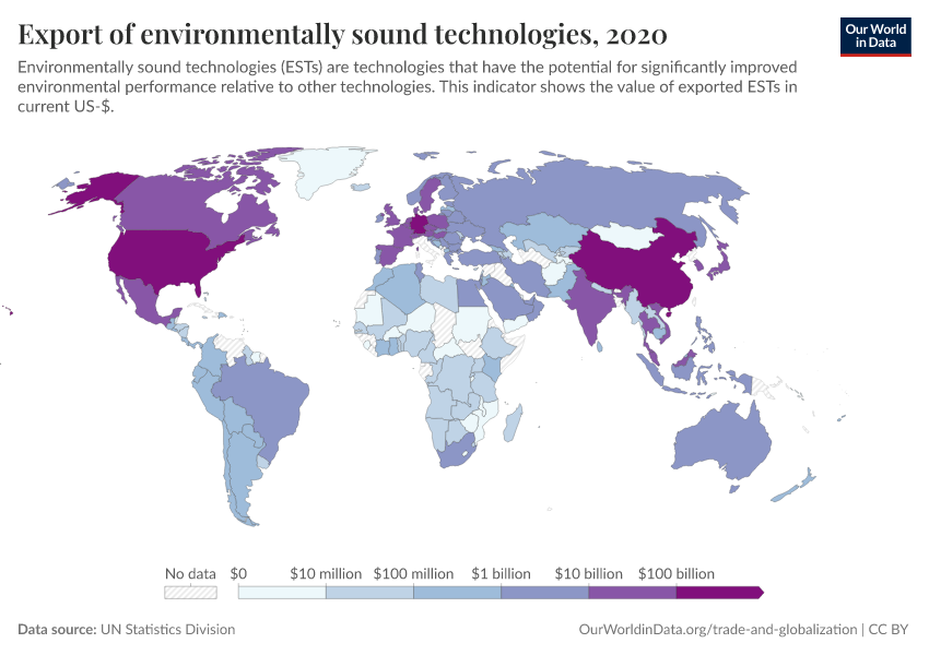 “Data Page: Export of environmentally sound technologies”. Our World in Data (2026). Data adapted from UN Statistics Division. Retrieved from https://style-housekeeper-simplifyre.owid.pages.dev:8789/20260130-180113/grapher/export-of-environmentally-sound-technologies.html [online resource] (archived on January 30, 2026).How to cite this data