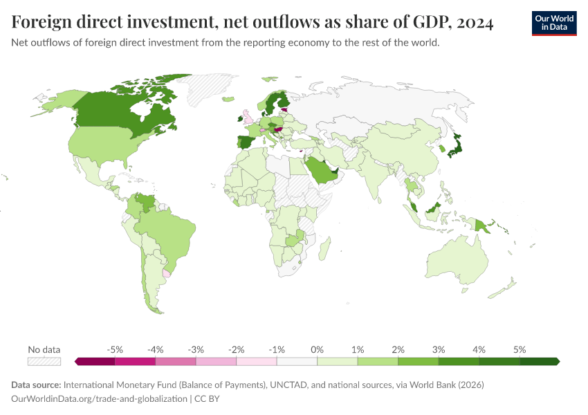 “Data Page: Foreign direct investment, net outflows as share of GDP”. Our World in Data (2026). Data adapted from International Monetary Fund (Balance of Payments), UNCTAD, and national sources, via World Bank. Retrieved from https://style-housekeeper-simplifyre.owid.pages.dev:8789/20260202-181317/grapher/foreign-direct-investment-net-outflows-as-share-of-gdp.html [online resource] (archived on February 2, 2026).How to cite this data