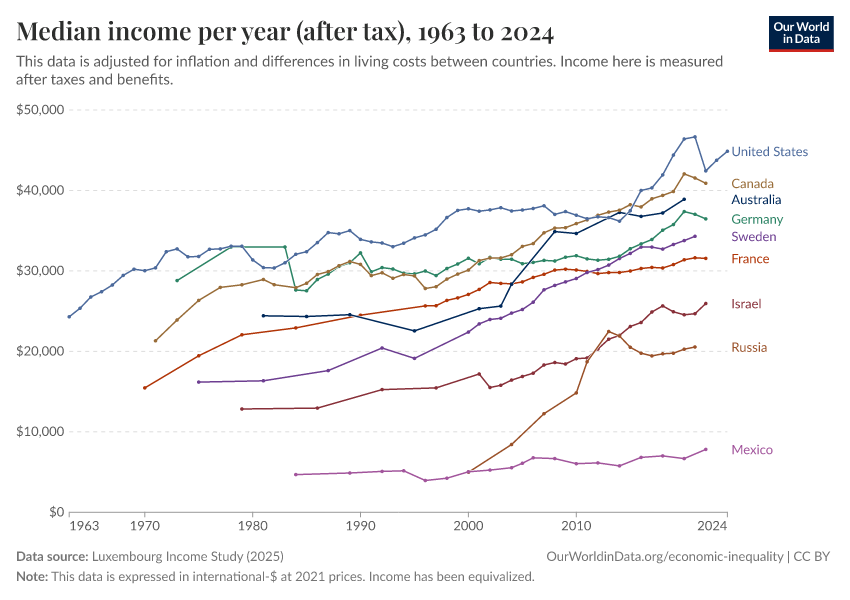 “Data Page: Median income per year (after tax)”, part of the following publication: Joe Hasell, Bertha Rohenkohl, Pablo Arriagada, Esteban Ortiz-Ospina, and Max Roser (2022) - “Poverty”. Data adapted from Luxembourg Income Study. Retrieved from https://style-housekeeper-simplifyre.owid.pages.dev:8789/20251224-105916/grapher/median-income-after-tax-lis.html [online resource] (archived on December 24, 2025).How to cite this data