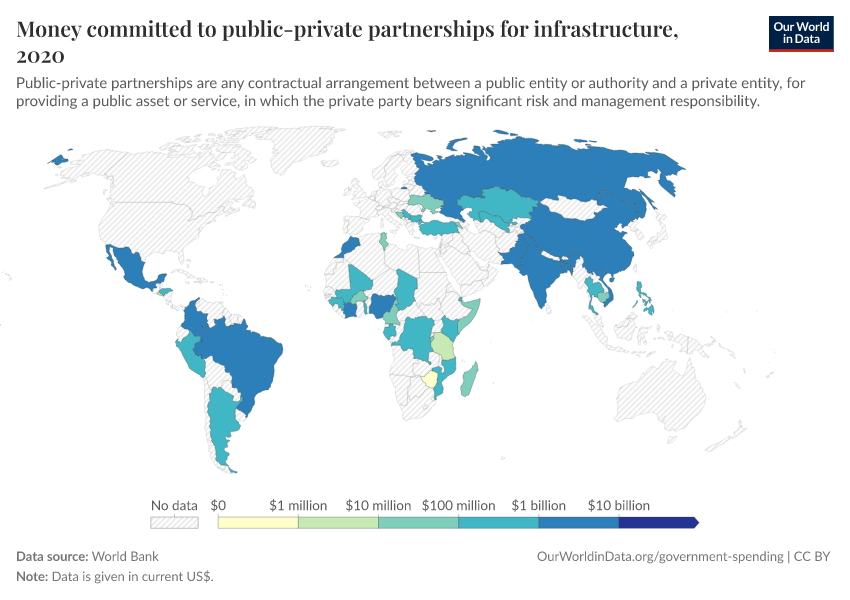 “Data Page: Money committed to public-private partnerships for infrastructure”. Our World in Data (2026). Data adapted from World Bank. Retrieved from https://style-housekeeper-simplifyre.owid.pages.dev:8789/20251120-211749/grapher/money-committed-to-public-private-partnerships-for-infrastructure.html [online resource] (archived on November 20, 2025).How to cite this data