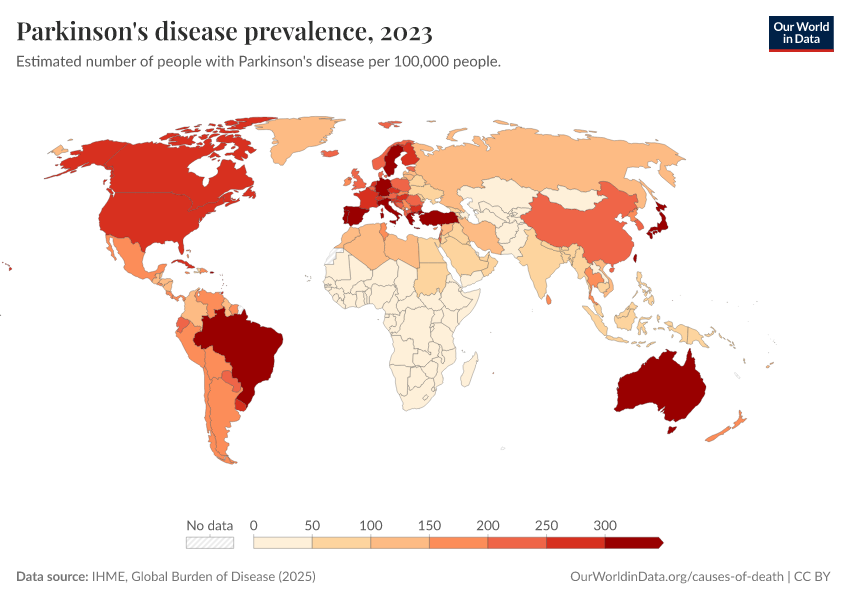 “Data Page: Parkinson's disease prevalence”, part of the following publication: Esteban Ortiz-Ospina and Max Roser (2016) - “Global Health”. Data adapted from IHME, Global Burden of Disease. Retrieved from https://style-housekeeper-simplifyre.owid.pages.dev:8789/20260212-172859/grapher/parkinsons-disease-prevalence-ihme.html [online resource] (archived on February 12, 2026).How to cite this data