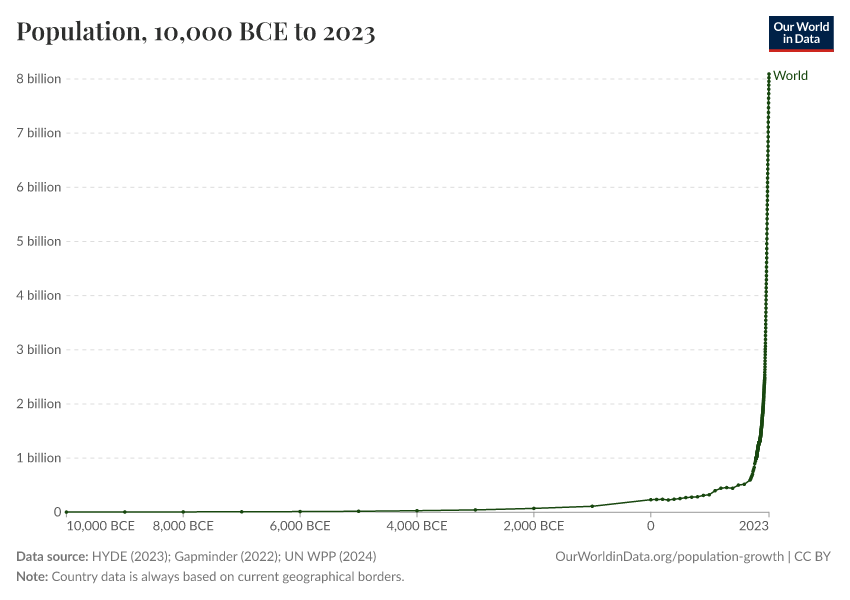 “Data Page: Population”, part of the following publication: Hannah Ritchie, Lucas Rodés-Guirao, Edouard Mathieu, Marcel Gerber, Esteban Ortiz-Ospina, Joe Hasell, and Max Roser (2023) - “Population Growth”. Data adapted from PBL Netherlands Environmental Assessment Agency, Gapminder, United Nations. Retrieved from https://style-housekeeper-simplifyre.owid.pages.dev:8789/20260119-065148/grapher/population.html [online resource] (archived on January 19, 2026).