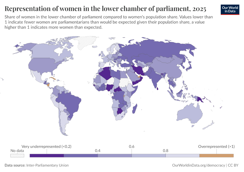 “Data Page: Representation of women in the lower chamber of parliament”. Our World in Data (2026). Data adapted from Inter-Parliamentary Union. Retrieved from https://style-housekeeper-simplifyre.owid.pages.dev:8789/20260130-180113/grapher/representation-of-women-in-lower-chamber-of-parliament.html [online resource] (archived on January 30, 2026).How to cite this data