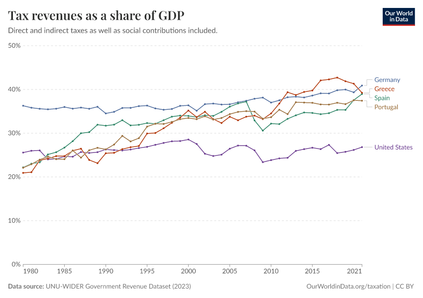 UNU-WIDER Government Revenue Dataset (2023) – with major processing by Our World in Data. “Tax revenues as a share of GDP – UNU-WIDER” [dataset]. UNU-WIDER, “Government Revenue Dataset (GRD) 2023” [original data]. Retrieved February 25, 2026 from https://style-housekeeper-simplifyre.owid.pages.dev:8789/20260105-133053/grapher/tax-revenues-as-a-share-of-gdp-unu-wider.html (archived on January 5, 2026).