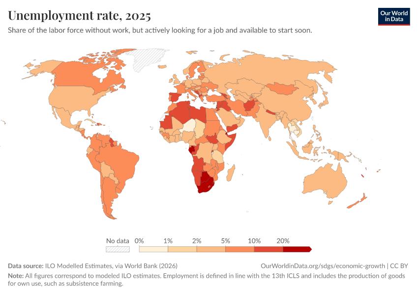 “Data Page: Unemployment rate”. Our World in Data (2026). Data adapted from ILO Modelled Estimates, via World Bank. Retrieved from https://style-housekeeper-simplifyre.owid.pages.dev:8789/20260203-104517/grapher/unemployment-rate.html [online resource] (archived on February 3, 2026).How to cite this data