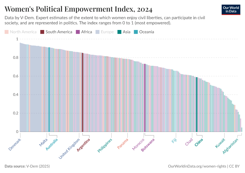 “Data Page: Women's political empowerment index”, part of the following publication: Bastian Herre, Lucas Rodés-Guirao, and Esteban Ortiz-Ospina (2013) - “Democracy”. Data adapted from V-Dem. Retrieved from https://style-housekeeper-simplifyre.owid.pages.dev:8789/20260119-070102/grapher/women-political-empowerment-index.html [online resource] (archived on January 19, 2026).How to cite this data