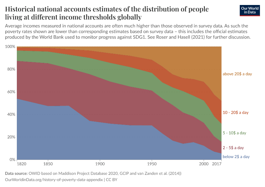 Joe Hasell (2019) - “Data appendix – The fight against global poverty: 200 years of progress and still a very long way to go” Published online at OurWorldinData.org. Retrieved from: 'https://style-housekeeper-simplifyre.owid.pages.dev:8789/20260128-140124/history-of-poverty-data-appendix.html' [Online Resource] (archived on January 28, 2026).BibTeX citation