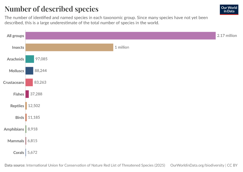 Hannah Ritchie (2022) - “How many species are there?” Published online at OurWorldinData.org. Retrieved from: 'https://style-housekeeper-simplifyre.owid.pages.dev:8789/20260106-083806/how-many-species-are-there.html' [Online Resource] (archived on January 6, 2026).BibTeX citation