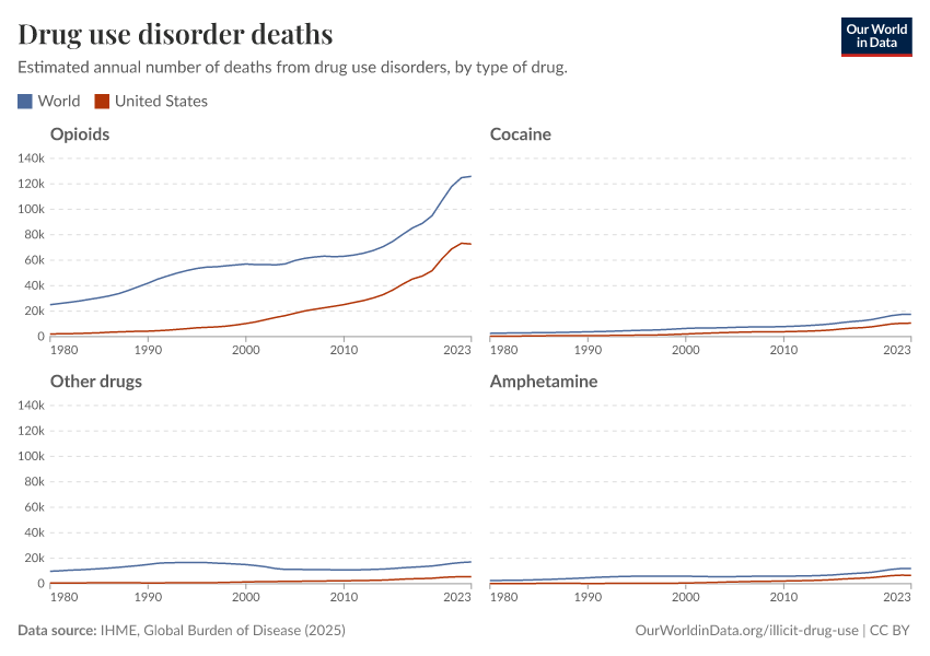 Hannah Ritchie, Pablo Arriagada, and Max Roser (2022) - “Opioids, Cocaine, Cannabis, and Other Illicit Drugs” Published online at OurWorldinData.org. Retrieved from: 'https://style-housekeeper-simplifyre.owid.pages.dev/illicit-drug-use' [Online Resource]BibTeX citation