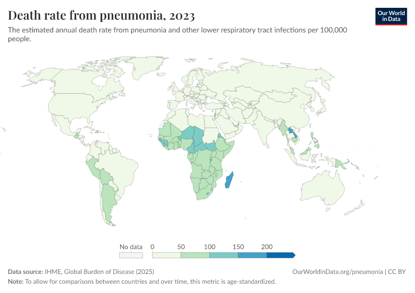 Bernadeta Dadonaite and Max Roser (2019) - “Pneumonia” Published online at OurWorldinData.org. Retrieved from: 'https://style-housekeeper-simplifyre.owid.pages.dev/pneumonia' [Online Resource]BibTeX citation