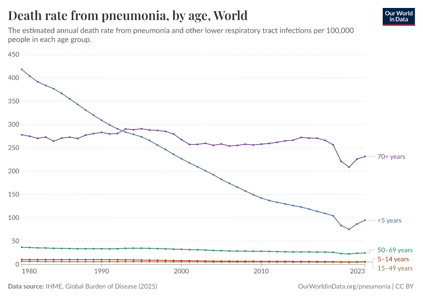 Pneumonia mortality rates by age