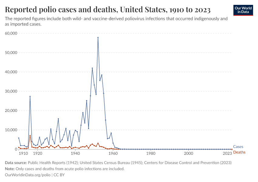 Saloni Dattani, Fiona Spooner, Sophie Ochmann, and Max Roser (2022) - “Polio” Published online at OurWorldinData.org. Retrieved from: 'https://style-housekeeper-simplifyre.owid.pages.dev/polio' [Online Resource]BibTeX citation