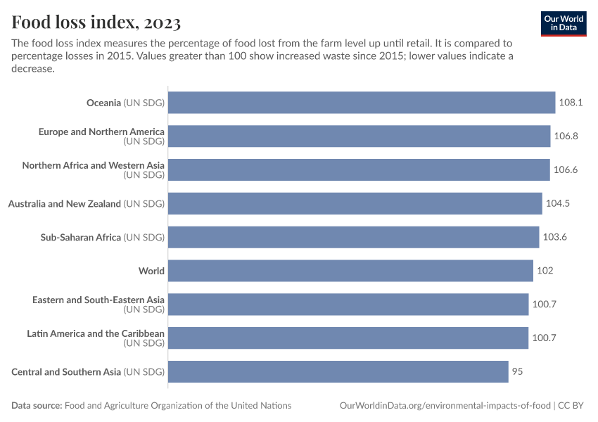 The ‘Food Loss Index’ measures how losses in the food supply chain have changed relative to 2015.