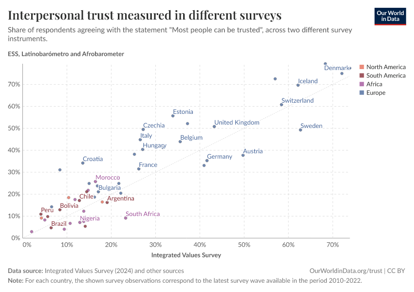 Esteban Ortiz-Ospina, Max Roser, and Pablo Arriagada (2016) - “Trust” Published online at OurWorldinData.org. Retrieved from: 'https://style-housekeeper-simplifyre.owid.pages.dev/trust' [Online Resource]BibTeX citation