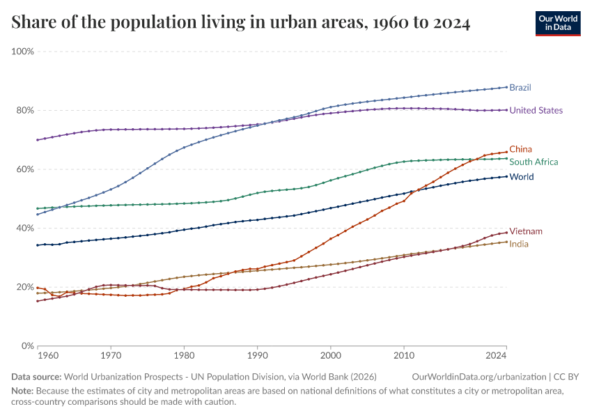 Hannah Ritchie, Veronika Samborska, and Max Roser (2024) - “Urbanization” Published online at OurWorldinData.org. Retrieved from: 'https://style-housekeeper-simplifyre.owid.pages.dev/urbanization' [Online Resource]BibTeX citation